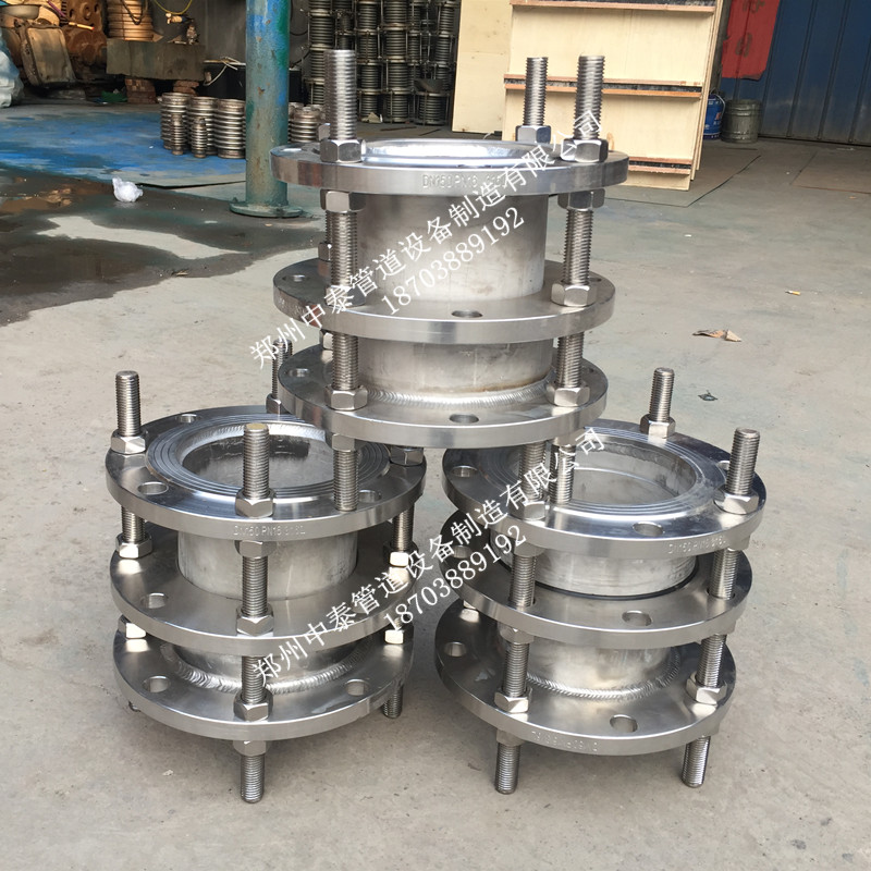 4、不銹鋼傳力接頭金屬和密封圈嚴格按使用性能及用戶要求選用。材質外部涂裝高強度防腐漆料,各部連接螺栓為高強度碳鋼或不銹鋼制作。因為本體與伸縮管之間有一定間隙,使它具有一定的軸向和徑向位。